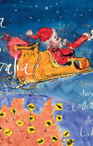 Join Santa on his magical sleigh ride over Australia where he is always secretly excited to visit to deliver his glittering presents. The stars of the Southern Cross in the Milky Way guide him over Uluru, on to tropical Queensland where he sings Christmas carols with the kookaburras. His journey takes him to the Great Barrier Reef where he spies phosphorescence he’s never seen before and on to Sydney, through the mouth of Luna Park, just for fun. The devils in the Tasmanian forest astonish him and he is amazed by Wilpena Pound. Santa’s smile is as wide as that of the crocodile he encounters in the Kimberley.
